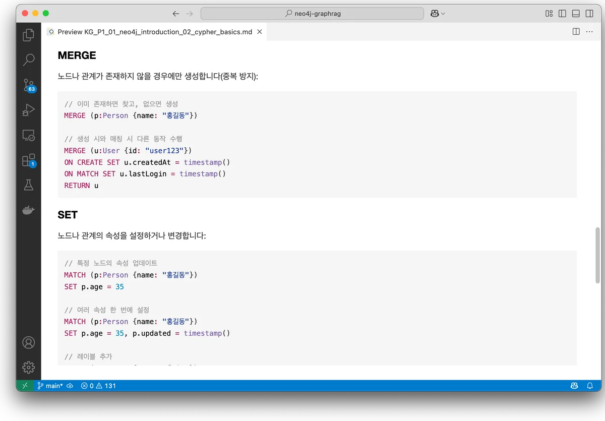 - 데이터 정제: 중복된 노드가 생기지 않도록 고유 식별자를 설정하여 병합 로직을 구현하세요.